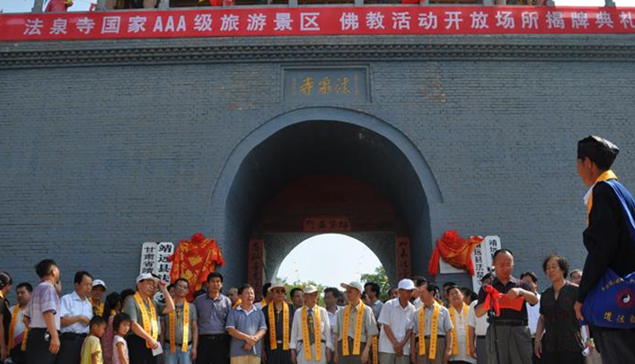 法泉寺,又名“紅山石崖禪寺”,是靖遠八景之首,素有“法泉地靈”之稱。法泉寺始建于北魏,距今已有1400多年的歷史。經過隋、唐、五代及宋、元、明、清等10多個朝代的修鑿,雕塑、壁畫數量眾多,殿字樓閣皆依崖而建,連為一體,非常雄偉壯觀。因巖崖之F有泉水涌出,崖半山腰間又有“墨池”、“月牙”、“龍骨”三泓清泉,以“法門”和“清泉”立說,這也就是“法泉寺”名字的由來了