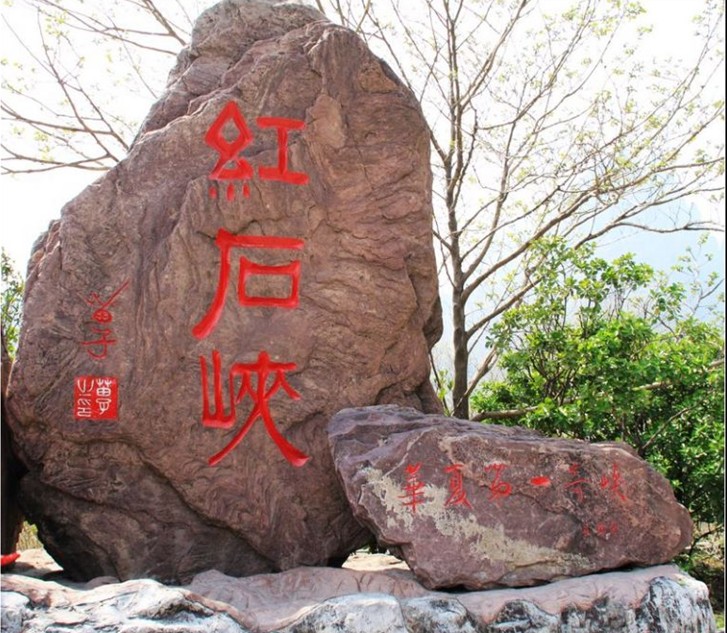 二、 紅石峽(溫盤峪)位于子房湖南,峪內夏日涼爽宜人,隆冬苔卉蒔草翠,故稱紅石峽。它集泉瀑溪潭澗諸景于一谷,融雄險奇幽諸美于一體,被風景園林專家稱贊為“自然界山水的精品”。谷里分布“白龍潭”、“黃龍潭”、“青龍潭”、“黑龍潭”、“臥龍潭”、“眠龍潭”、“醒龍潭”、“子龍潭”、“游龍潭”,構成“九龍溪”。還有“幽瀑”、“穿石洞”、“相吻石”、“雙獅汲水”、“孔雀開屏”、“棋盤山”等景觀。谷口南端有一狹窄的峽谷稱為“一線天”,且有瀑高50余米的白龍瀑布。兩側高山聳立,恰似一個石闕,正好是云臺山的西大門。