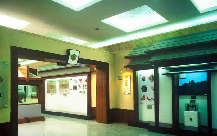 博物館現有4個展廳。其中二樓東展廳為“敦煌漢長城展覽”,以巨型沙盤模型和大量圖片,展示了敦煌境內的漢長城、烽燧、古關遺址,并展出有發掘的漢簡、火炬、古幣、箭鏃等實物。三樓東西兩展廳設“敦煌歷史文物展覽”, 版權所有山東聊城聊之旅國際旅行社有限公司,轉載必究!展出歷代出土文物679多件,重點反映了漢唐時期敦煌在絲綢之路的重要地位,成為中外游客在短時間內集中了解敦煌歷史文化的窗口.