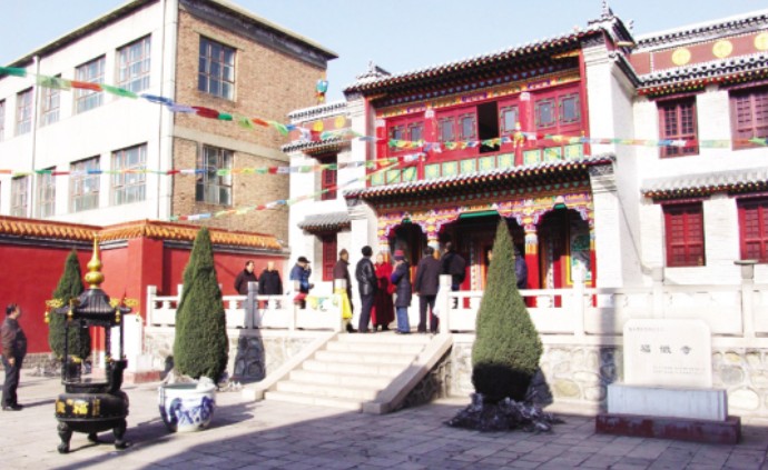 位于包頭市東河區(qū)拐子街,約建于清乾隆年間,又名"福徵寺",是包頭城內(nèi)唯一的一座蒙古族召廟,藏式建筑結(jié)構(gòu),磚石墻壁,用石灰水澆灌成純白色,兩層樓堂,底層為經(jīng)堂,內(nèi)無間墻,兩排圓木柱直通到頂,樓上分為前后兩座佛堂,分別供奉釋迦牟尼和其它塑畫神像。正前方是滿面門窗,外有護(hù)欄走廊,東西墻壁設(shè)長方形小窗,環(huán)召有通行走廊和花欄圍墻,在召廟兩側(cè),有兩所大院,版權(quán)所有山東聊城聊之旅國際旅行社有限公司,轉(zhuǎn)載必究!設(shè)有客堂、廳舍、廚房貨倉、馬棚馬圈等,總面積約7000平方米。