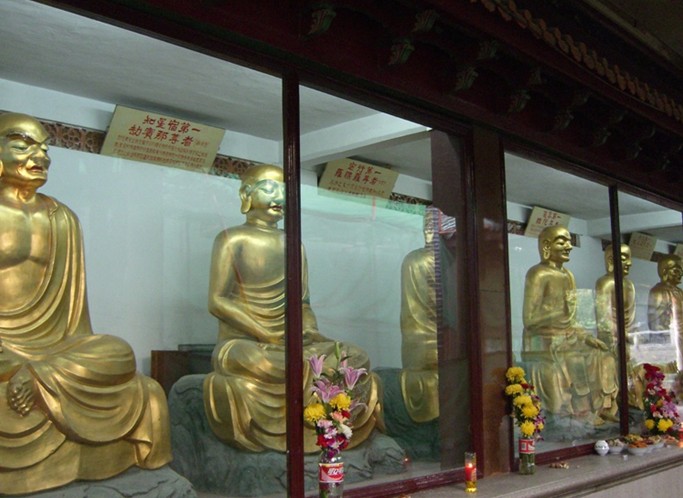 藏經閣是中軸線上的最高層建筑,為歇山重檐式雙層樓閣,一層為法堂,是僧人講經說法的地方,二層為玉佛 殿,內供28尊緬甸玉佛,并藏有數萬卷古今中外的佛典經書及一些珍貴的文物。