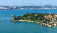 南普陀寺是廈門著名古剎,居于鷺島名山五老峰前,背依秀奇群峰,面臨碧澄海港,風景絕佳。始建于唐代,為閩南佛教勝地之一。寺內天王殿、大雄寶殿、大悲殿建筑精美,雄偉宏麗,各殿供奉彌勒、三世尊佛等。藏經閣珍藏佛教文物豐富多彩,有經典、佛像、宋代銅鐘、古書等,明萬歷年間血書《妙法蓮花經》和何朝宗名作白瓷觀音等最為名貴。