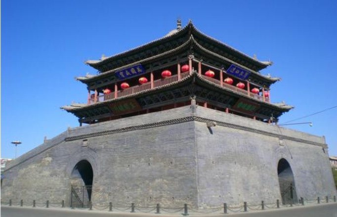 俗稱鼓樓,位于甘肅張掖市中心,東西南北四條大街交匯于此,是河西走廊現存最大的鼓樓。樓于明正德二年(1507年)建在一座磚包的高臺上,臺基寬32米,高9米,基座至樓頂30多米。樓為三層木構塔形,飛檐翹角,雕梁畫棟,結構精巧,造型雄偉壯觀。基座有“十”字洞通向東西南北與四條大街銜接。版權所有山東聊城聊之旅國際旅行社有限公司,轉載必究!樓上四面懸有匾額:東為“金城春雨”,西為“玉關曉月”,南為“祁連晴雪”,北為“居延古牧”。現鼓樓東南角懸唐鐘一口,是以銅為主的合金鑄成,工藝精湛,渾厚雄偉。鐘高1.3米,口徑1.15米,重600公斤。鐘身飾有飛天及朱雀、玄武、白虎、青龍圖案。此鐘古代多用來報時或火災報警。