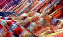 張掖丹霞地貌8月被《圖說天下•國家地理》編委會(huì)評(píng)為“奇險(xiǎn)靈秀美如畫——中國最美的六處奇異地貌”之一。 張掖丹霞地貌分布廣闊,主要分布在臨澤、肅南兩縣,面積300多平方公里,是中國丹霞地貌發(fā)育最大最好、地貌造型最豐富的地區(qū)之一。