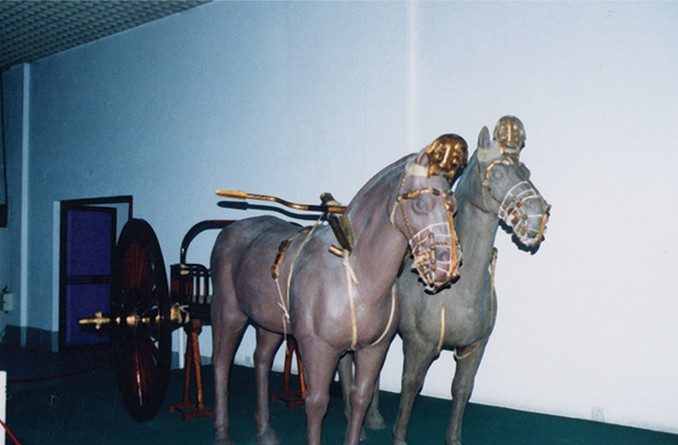 春秋殉馬坑殉戰車10輛,馬32匹,規模之大,配套之齊全,馬飾之精美,為當代全國之冠,列全國十大考古發現之一。古車陳列展廳陳列后李車馬坑出土的各類車和臨淄地區出土的古代車的復原車,直至全國出土的各類古代車復原車。集中國古車研究成果之大成,薈華夏歷代車乘珍品之精粹,充分展示了我國車乘的悠久歷史和造車技術在世界車輛發展史上的領先地位.