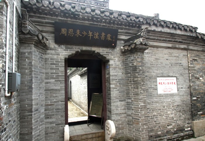 周恩來少年讀書處位于江蘇省寶應(yīng)縣城縣南街水巷口3號,原為周恩來同志的外祖父陳沅的宅第,整個建筑為清代風(fēng)格,分東西兩個院落,共十八間房屋,建筑面積500平方米,占地面積700多平方米。1996年寶應(yīng)縣政府組織全面修繕,恢復(fù)原貌,1998年3月5日周恩來同志誕辰100周年正式對外開放。