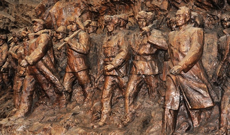 在建筑和布展上,鐵人王進喜紀念館均體現了“厚重、大氣、質樸、昂揚、粗獷、豪放”的風格。走進紀念館序廳,版權所有山東聊城聊之旅國際旅行社有限公司,轉載必究!迎面是一組國內最大的鑄銅雕像《石油魂》,它氣勢磅礴,真實生動地刻畫了以鐵人王進喜為代表的英雄群體形象。