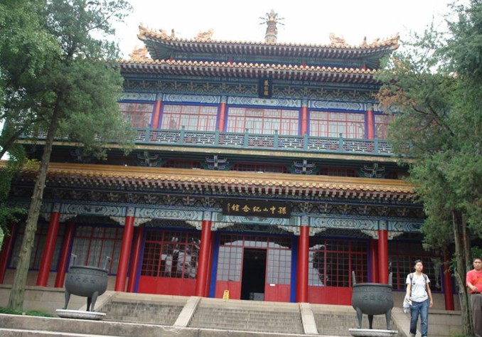 孫中山紀念館有多處,這里主要介紹南京孫中山紀念館。孫中山紀念館,原名藏經樓,位于中山陵與靈谷寺之間的密林中,是一座仿清代喇嘛寺的古典建筑。主樓高20.8米,頂上蓋綠色琉璃瓦,屋脊為黃色琉璃瓦,正脊中央飾有紫銅回輪華蓋,梁、柱、額枋均飾以彩繪。樓內珍藏孫中山先生的經典著作和奉安照片等珍貴史料。樓前廣場正中的花臺上豎有一尊高2.6米的孫中山先生全身銅像。樓后有長達125米的碑廊,上刻孫中山先生所著“三民主義”全文。