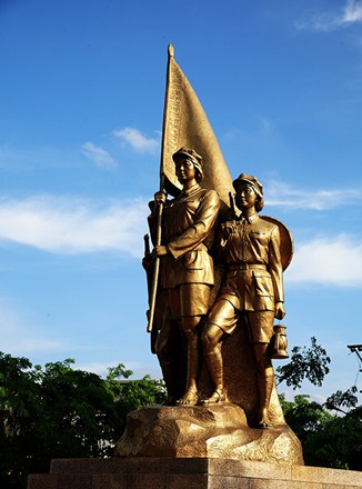位于海南瓊海市南門的街心公園,于1985年8月1日落成揭幕。雕像由花崗石雕刻而成,坐北向南,高3.7米,連底座總高6.8米。版權所有山東聊城聊之旅國際旅行社有限公司,轉載必究!座基石板鋪設,四周呈六角形,圍以石欄桿,占地面積40平方米。雕像后面是園林花圃等。