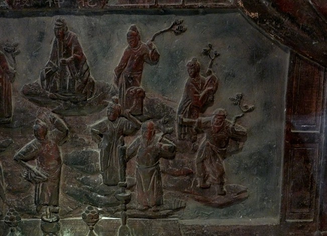 節(jié)俗廳里,眼下再現(xiàn)的主要是蘇州人過(guò)八月半的風(fēng)俗。每逢中秋節(jié) ,蘇州人要“齋月宮” 。入夜,家家置供桌于開(kāi)下,供上菱藕、石榴、栗子、白果等時(shí)令瓜果及月餅等。焚香點(diǎn)燭,以寄托對(duì)美好生活的向往。蘇州人還有中秋上街看小擺設(shè)的習(xí)俗,觀前街稻香村生產(chǎn)的蘇式月餅最有名,店門前陳列的 小擺設(shè)也最吸引人。展廳中,五路財(cái)神出巡儀仗”、“山塘看會(huì)”的小擺設(shè)造型生動(dòng),玲戲精巧,使人依稀想象著當(dāng)年熱鬧非凡的情景。每至清明節(jié)、七月半、十月朝,又有"三節(jié)出會(huì)"之舉,到虎丘祭祀,有各式各樣的明間表演。這些在民俗廳都有展示。蘇州地區(qū)有著終年不斷的歲時(shí)節(jié)分活動(dòng)。如鬧元宵、鄧尉探梅、軋神仙、迎伍君、黃天蕩賞荷、石湖串月、天平觀楓、寒山寺聽(tīng)鐘等等,節(jié)俗廳把舊時(shí)虎丘山塘街出會(huì)全部?jī)x仗再現(xiàn)于觀眾面前,組成了濃郁的吳中地方風(fēng)情。節(jié)俗廳由180件小擺設(shè)組成“五路財(cái)神出宮巡行儀仗隊(duì)” ,再現(xiàn)了舊時(shí)中秋節(jié)蘇州人上街爭(zhēng)看小擺設(shè)的場(chǎng)面。