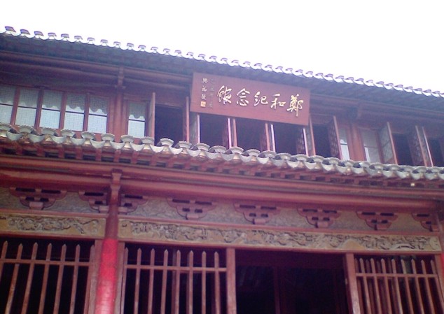 大門之內立有“鄭和故里”牌坊,其后,參天樹叢中掩映著鄭和紀念館,陳列有鄭和下西洋的碑文拓片、石刻以及航海用具等文物。