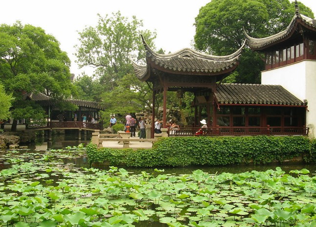 拙政園,這一大觀園式的古典豪華園林,以其布局的山島、竹塢、松崗、曲水之趣,被勝譽為“天下園林之典范”。 與承德避暑山莊、留園、北京頤和園齊名,該園是中國四大名園之首、全國重點文物保護單位、全國特殊游覽參觀點之一、世界文化遺產,迄今為止同時具備這四項桂冠的全國僅拙政園一家。 拙政園中現有的建筑,大多是清咸豐九年(1850年)拙政園成為太平天國忠王府花園時重建,至清末形成東、中、西三個相對獨立的小園。