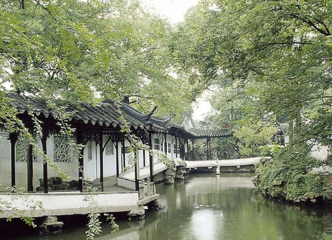 這種園中園式的庭院空間的出現和變化,究其原因除了使用方面的理由外,恐怕與園林面積縮小有關。光緒年間的拙政園,僅剩下了1.2公頃園地。與蘇州其他園林一樣,占地較小,因而造園活動首要解決的課題是在不大的空間范圍內,能夠營造出自然山水的無限風光。這種園中園、多空間的庭院組合以及空間的分割滲透”、對比襯托;空間的隱顯結合、虛實相間空間的蜿蜒曲折、藏露掩映;空間的欲放先收、欲揚先抑等等手法,其目的是要突破空間的局限,收到小中見大的效果,從而取得豐富的園林景觀。這種處理手法,在蘇州園林中帶有普遍意義,也是蘇州園林共同的特征。