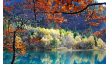 秋:秋天是九寨溝最為燦爛的季節,五彩斑斕的紅葉,彩林倒映在明麗的湖水中。繽紛的落在湖光流韻間漂浮。悠遠的晴空湛藍而碧凈,自然自造化中最美麗的景致充盈眼底。