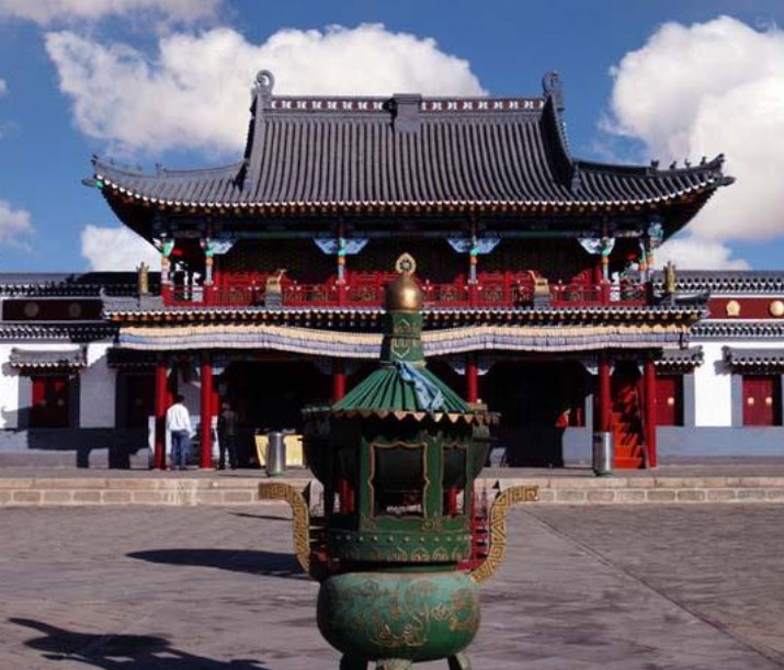 寺為喀爾喀右翼旗(通稱達爾罕旗)貝勒所建,俗稱貝勒廟;1913年焚毀,1924—1927年間重修,現尚存部分廟宇。大殿內分為經堂和佛殿,歇山式頂;兩側配房為硬山式建筑。廟前尚存有覆缽式塔2座。今附近已發展成為新興草原城鎮。
