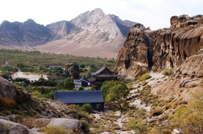 巴林左旗召?gòu)R位于內(nèi)蒙古自治區(qū)赤峰市巴林左旗林東鎮(zhèn)南15公里處 ,當(dāng)?shù)厝艘步袑毟襁_(dá)召或阿貴圖廟(蒙語(yǔ)譯音)。召?gòu)R始建于遼王朝,占地面積1023.35畝,由石窟和外殿兩部分組成,石窟開(kāi)鑿于遼代,史稱——真寂之寺,外殿建于清代,名為善福寺(前殿)及千佛殿,是內(nèi)蒙古自治區(qū)級(jí)重點(diǎn)文物保護(hù)單位。真寂之寺位于群山之中。圣水、別愣、靈巖三山鼎立,自然造就一個(gè)箕形山谷。靈巖山從谷地驟然拔起,懸崖峭壁,十分險(xiǎn)峻。一桃形巨石僅以三點(diǎn)支撐,聳立在峰頂崖端,版權(quán)所有山東聊城聊之旅國(guó)際旅行社有限公司,轉(zhuǎn)載必究!契丹石窟開(kāi)鑿在桃石山東南面陡壁上,分中、南、北三窟。窟前是清代續(xù)建的喇嘛廟“善福寺”。窟內(nèi)有千佛像,形態(tài)各異。