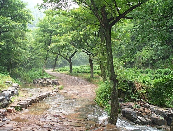 九溪在煙下嶺的西面,在龍井山的南面,九溪水曲折回旋,它曲曲折折了九回才流出,所以稱它為九溪。它的路徑崎嶇,草木茂盛,人跡罕至,幽美寂靜,別有一番天地,并不像人間那么喧鬧。九溪下面是十八澗,古代這還有李巖寺、宋陽和王梅園、梅花徑等古跡,但現在都已蕩然無存。而此地又遠離城鎮,在江流的偏僻處,對西湖一帶非常熟悉、有閱歷的人,他們把西湖的各個名勝都尋訪遍了,但問到九溪十八澗,都對它的位置表現出不知所以的樣子。