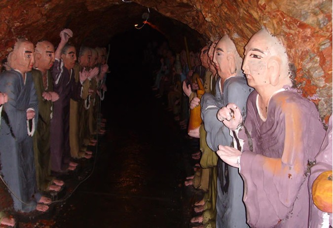 由瀑布下游溯流而上,首先是一座木拱橋——娛橋。橋下的水域,幾百條虹鱒魚清晰可見。從戲鱒橋上過去,沿著棧道向里走300米,在附近的一片山坳里,集中分布著21口“火山井”。顧名思義,火山井,渾圓的井口突出地表,直徑最大的不過1.5米,深度均在2-3 米之間。井壁是堅硬的熔巖,若仔細觀察,井壁上有著完整的文理。但火山井并非取水之用途,令人稱奇的是,每個火山井底部都存有大量木炭,井壁上的文理,看上去就象樹皮的文理一樣。它是怎樣形成的?從發現這片神奇的“火山井”到現在,有關專家指出:金龍頂子山在噴發時期,呈液態的巖漿流在地表流動,極短的時間里流過山腳的這片谷地,這里原本茂密的原始森林,很多參天大樹被巖漿流包裹,迅速燃燒炭化,形成“火山井”奇觀。