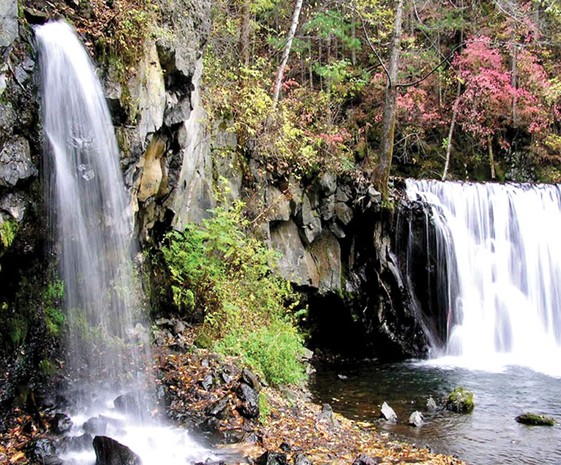 吊水壺瀑布景區距離三角龍灣15分鐘的車程,版權所有山東聊城聊之旅國際旅行社有限公司,轉載必究!與金龍頂子山相依為伴。吊水壺瀑布是火山爆發后,河床受張力斷迭形成的瀑布,寬約10米,落差7米。更別致的是另有一處水流好似噴泉,自崖中間凌空噴下,象茶壺中的水從壺嘴中倒出來一樣,故當地人稱其為“吊水壺”。吊水壺瀑布景致壯觀秀麗,流水清澈見底,冬天水不封冰,夏日冰涼刺骨。炎熱的盛夏時節前去,一定會看到水珠飛濺、霧氣蒙蒙的景象,一陣陣涼氣襲來,沁人心脾,可謂避暑度夏的最好去處了。