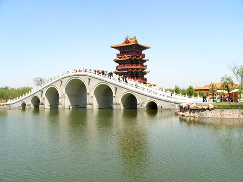 清明上河園景區,占地600畝,其中水面120畝,總建筑面積1萬平方米。仿照原圖,設驛站、民俗風情、特色食街、宋文化展示、花鳥魚蟲、繁華京城、休閑購物和綜合服務等八個功能區,并設有校場、虹橋、民俗、宋都等四個文化區。游覽清明上河園,可以跨虹橋,登上善門,游鴻福寺,瀏覽文繡院,下榻古驛站,就餐孫羊正店。游覽清明上河園,您可以情觀黨民間雜耍、木蘭織房、年思社,還有吹糖人、剪紙、風箏等民間工藝,當然還有聞名中外的開封小吃。