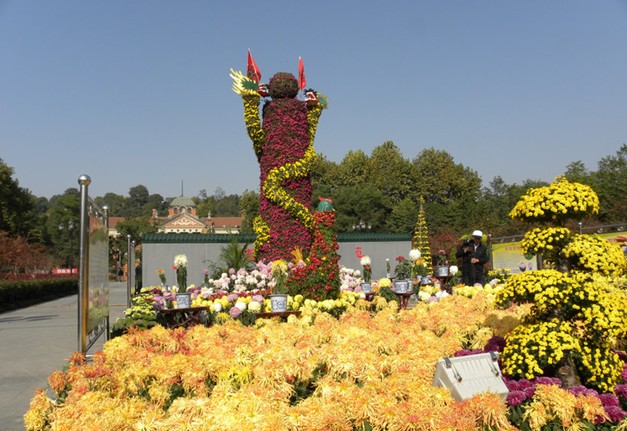 南廣場上,彭、劉、楊烈士雕像用紅砂石重新鑄造,1000年不會(huì)風(fēng)化。廣場燈也是造型新穎別致,成為街市新景觀。入夜華燈齊上,整個(gè)廣場籠罩在白茫茫的光霧之中,花光樹影披上了一層薄薄的紗巾,顯得分外神秘和迷人。