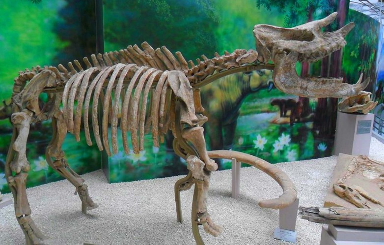 黑龍江滿州龍是一類大型的鴨嘴龍,體長10.50m,體高6.1m,嘴巴象鴨子是其最大的特征。它屬于素食龍,牙齒小而多,前肢細(xì)小而后肢粗壯。該恐龍骨架產(chǎn)于黑龍江省嘉陰縣,生活在6500萬年前的白堊紀(jì)末期。因其含有50%的真化石,在世界恐龍化石中占有重要地位,構(gòu)成了地大逸夫博物館的顯著標(biāo)志。
