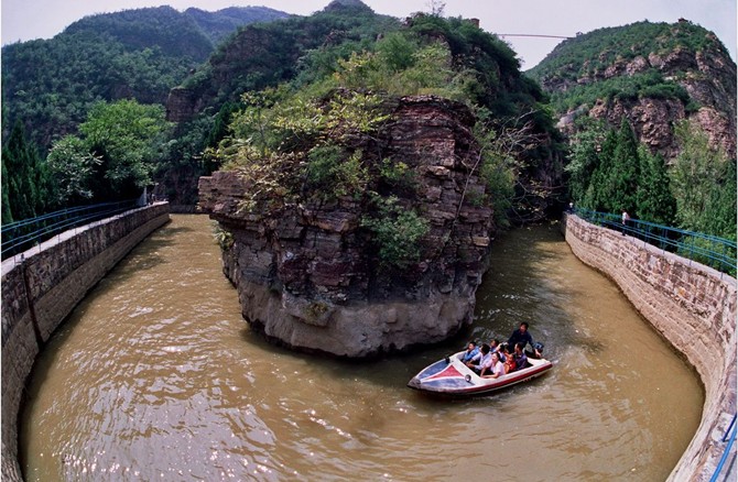 紅旗渠是1960年林縣人民在太行山懸崖峭壁上盤山開鑿的,把漳河水引入林縣。沿漳河南岸繞懸崖,越峽谷,逢山開洞,遇河架橋,開鑿長達(dá)70公里的總干渠,渠高4.3米,寬8米,引水量18.3立方米/秒。從分水嶺向下,分鑿三條干渠。第一條干渠沿太行山東麓向南與英雄渠匯合,全長41.5公里;二干渠與英雄渠匯流處稱“紅英匯流”,渠水奔騰,飛瀑噴雪,好似銀河傾瀉。第二干渠全長48公里,東南流入安陽縣。第三干渠東北流經(jīng)4公里長的曙光洞而入東崗鄉(xiāng)。整個(gè)工程劈開山頭1,250座,鑿?fù)ㄋ矶?11個(gè),架設(shè)渡槽152條,挖砌土石1,640萬立方米,用工4,000多萬個(gè)。版權(quán)所有山東聊城聊之旅國際旅行社有限公司,轉(zhuǎn)載必究! 紅旗渠的建成,全縣形成了引、蓄、提相結(jié)合的水利網(wǎng),建水庫、池塘400多個(gè),建中、小型水電站80多個(gè),灌溉面積40萬畝,解決了人畜飲水的困難,并提供了工業(yè)用水。紅旗渠在國內(nèi)外享有很高的知名度,被譽(yù)為“人造天河”、“當(dāng)代萬里長城”。