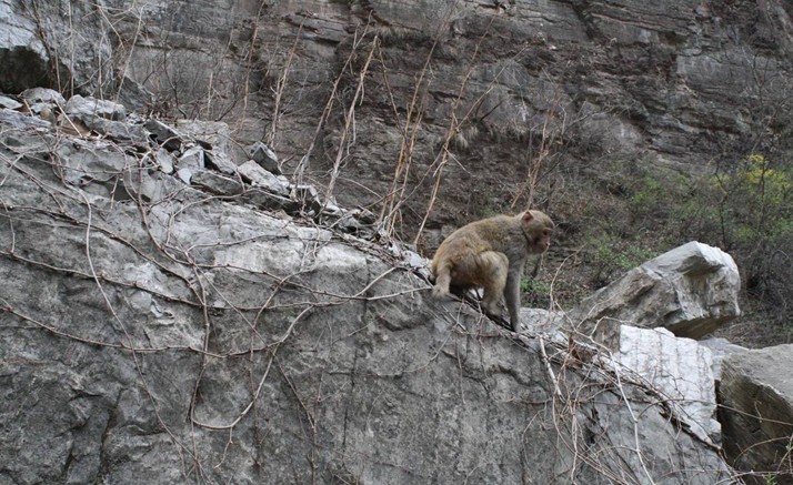 太行獼猴,在進化系統(tǒng)上屬靈長目猴科,為國家二級保護動物。由于太行獼猴是生活在氣候較冷,緯度最北的獼猴群,周圍環(huán)境山峰陡峭。因此獼猴群體大、體壯,毛長尾短,善于攀緣,喜歡跳躍,行動敏捷,形體俊美,模仿性強,為獼猴中最進化的一種,具有很高的科研價值、經(jīng)濟價值和觀賞價值,其觀賞性、趣味性、參與性均屬當今世界最受歡迎的旅游項目。太行獼猴終年棲息于針闊葉混交林、灌木林及懸崖峭壁之間,喜群居生活,由猴王率領(lǐng)猴群,并配備護衛(wèi)猴、哨猴,通常每群百只左右,白天活動覓食,夜間宿于懸崖峭壁之上,以植物性食物為主,屬雜食性動物。