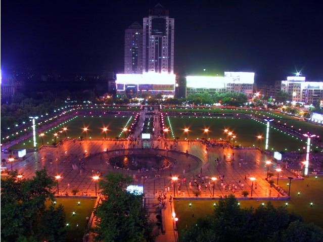 夷陵廣場由上海市園林設計院設計,采用主副軸線構圖,版權所有山東聊城聊之旅國際旅行社有限公司,轉載必究!全開放式,綠地率達66%,突出以綠化為主題、夜景為特色,充分展示了城市建設和管理的高起點、大手筆,具有鮮明的時代感。廣場設置有草坪燈、庭院燈、高桿燈,“世紀光柱”燈等各類燈具857盞,音樂旱噴泉、背景小音響、自動噴灌等設備各一套,飼養以白色為主的廣場鴿1000余只。版權所有山東聊城聊之旅國際旅行社有限公司,轉載必究!流光溢彩的音樂噴泉、五彩斑斕的夜景燈光與四季常綠的冷季型草坪、花團錦簇的廣場花卉構成了一幅優美的畫卷;晨練的老人、嬉戲的兒童與悠閑覓食的廣場鴿組成了人與自然和諧相融的城市景觀。