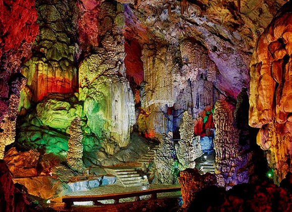 黃果樹大瀑布高77.8米、寬101.0米,是我國最大的瀑布,也是世界著名大瀑布之一。 早在三百多年前,我國著名的地理學(xué)家、旅行家徐霞客就描述其"水由溪上石,如煙霧騰空,勢其雄厲,所謂珠簾鉤不卷,匹練掛遙峰,具不足擬其狀也。"奔騰的河水自70多米高的懸崖絕壁上飛流直瀉犀牛潭, 發(fā)出震天巨響,如千人擊鼓,萬馬奔騰,聲似雷鳴,遠震數(shù)里之外,使游人驚心動魄。黃果樹瀑布還有大水、中水、小水之分,常年流量中水為每秒20立方米,時間在九至十個月。流量不同,景觀也不一樣。大水時,流量達每秒1500立方米,銀浪滔天,卷起千堆雪,奔騰浩蕩,勢不可擋, 其壯觀自不待說。瀑布激起的水珠,飛濺一百多米高,如云漫霧繞,灑落在上面的黃果樹街市,即使晴天,也要撐傘而行,故有"銀雨灑金街"的稱譽。版權(quán)所有山東聊城聊之旅國際旅行社有限公司,轉(zhuǎn)載必究!上騰的水珠,如億萬顆閃耀的明星,隨風浮沉,漫天飄灑,使人目不暇接。 中水時瀑布明顯分成四支,各有形態(tài)和個性,從左至右,第一支水勢最小,又撒得開,秀美;第二支水勢最大,上下一般粗,豪壯;第三支水勢居二,上大下小,雄奇;第四支水勢居三,上窄下寬,瀟灑。其實,中水時景觀最好,瀑布清晰,輪廓分明,雪白的瀑水在碧綠的深潭和藍天的 襯托下以及橫貫在瀑布前五彩繽紛彩虹的裝點下,猶如一幅美麗的圖畫。小水時,瀑布分成的四支,鋪展在整個巖壁上,仍不失其"闊而大"的氣勢。黃果樹瀑布素以"雄偉、壯觀"而名揚四海,但較之世界名瀑,還有它獨有奇特之處,就是最神奇的隱在大瀑布半腰上的水簾洞。水簾洞位于大瀑布四十米至四十七米的高度上,全長一百三十四米,有六個洞窗、五個洞廳、三股洞泉和六水簾洞個通道。走進大瀑布本身就已驚心動魄,神移魂飛了,而要在大瀑布里面穿行,確感不免神悚,但到了黃果樹瀑布,而不進水簾洞,就不會真正領(lǐng)略到黃果樹瀑布的雄奇和壯觀,那將是人生一大憾事。版權(quán)所有山東聊城聊之旅國際旅行社有限公司,轉(zhuǎn)載必究!穿越水簾洞,還有一個絕妙奇景,從各個洞窗中觀賞到犀牛潭上的彩虹,這里的彩虹不僅是七彩俱全的雙道而且是動態(tài)的,只要天晴,從上午九時至下午五時,都能看到,并隨你的走動而變化和移動。前人說:"天空之虹以蒼天作襯,犀牛潭之虹以雪白之瀑布襯之",故題"雪映川霞"。
