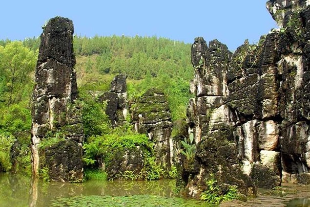 天星景區(qū)是黃果樹風景區(qū)中已全部開發(fā)的景區(qū),景區(qū)規(guī)劃面積7平方公里,開發(fā)游覽面積4.5平方公里,分 為三個相連的片區(qū),即:天星盆景區(qū)、天星洞景區(qū)和水上石林區(qū)。這里石筍密集,植被茂盛,水到景成,集山、水、林、洞為一體。天星盆景區(qū)長約800米,位于500米長伏流表面和河岸西側(cè)。有大大小小的天然山石及水石盆景。一條三公里的石板小道,穿行于石壁、石壕、石縫之中,逶迤于盆景之上。沿小道游覽,抬頭是景、低頭是景,前后左右都是景,仿佛到了天上的仙境,地下的迷宮。漫步其間,既領(lǐng)略山水之美、又可品味石林之雄奇。版權(quán)所有山東聊城聊之旅國際旅行社有限公司,轉(zhuǎn)載必究!近處石林,遠處群山,倒映碧水之上,展現(xiàn)在眼前的是一幅色彩淡雅景色協(xié)調(diào)的天然山水畫。有的還可撐上竹筏,穿行于峽谷、石林之中,真可謂輕舟蕩碧波,人在畫中游。天星盆景區(qū)還有美女榕、仙山群掌、歪梳石、熊貓抱竹、雄鷹展翅等形態(tài)十分畢真的天然景觀。天星洞景區(qū)在天星景區(qū)中段,除游覽觀賞洞內(nèi)的鐘乳石外,洞外景觀也很特別,一線天高長均在二十多米而且狹窄;冒水潭是暗河出口,大水時,憑伏流沖擊的壓力,水可以沖起五六米高,甚為壯觀。水上石林區(qū),此段河床寬闊達400米,面積約0.4平方公里的石林就長在河床之中,任河水長年沖刷。石林間長著大片的仙人掌和小灌木,終年點綴著綠蔭。冰冷的石頭上,展現(xiàn)的都是生命的繁榮,所謂"石上流水,水上有石,石上有石,石上又有樹。"水上石林區(qū)有很多景觀,如群榕聚會、根王、根墻屏障、盤根畫壁、仙女飛天等,銀鏈墜潭瀑布和星峽飛瀑也分別處在水上石林的左右二側(cè)。 銀鏈墜潭瀑布,位于天星景區(qū)水上石林左上方。在黃果樹瀑布群中,它既不是以高取勝,也不是以闊或大驚人,而是以它那千絲萬縷的情態(tài)和如泣如訴的瀑聲,讓人看見就不想離開。版權(quán)所有山東聊城聊之旅國際旅行社有限公司,轉(zhuǎn)載必究!這個瀑布只有十余米高,上面成漏斗形,底部是槽狀溶潭。在潭沿面上隆起的石包,象一張張下覆的蓮葉,交錯搭連,河水在每一張葉面上均勻鋪開,縱情漫流,象千千萬萬條大大小小的銀鏈,輕音嚷嚷地緩緩墜入溶潭,永遠沒完沒了。