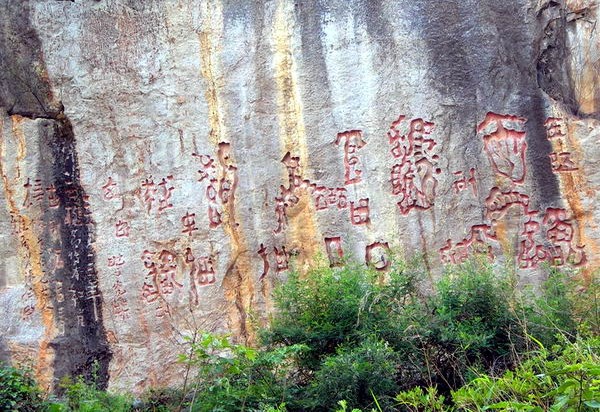 山上是一壁灼灼似火的州霞奇崖,寬約百米,高則三十余米,頗具渾宏的氣勢(shì),遠(yuǎn)處望去確象一壁燭天的赤城,在萬(wàn)山的叢綠中更加醒目。版權(quán)所有山東聊城聊之旅國(guó)際旅行社有限公司,轉(zhuǎn)載必究!在這壁紅崖北面的一隅,數(shù)十平米的峭崖上,有若干形如鐘鼎古榴的符號(hào),其布局蹊蹺,風(fēng)格古拙,使人頓感古趣盎然,仿佛時(shí)空墜入了遠(yuǎn)古的過(guò)去。這就是千古謎的紅崖天書(shū)!