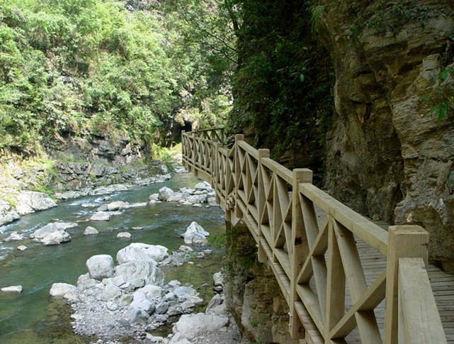南江大峽谷的棧道總長2公里,它復原了古老的奇跡,突破了空間的阻隔,使游人在有驚無險中飽餐原汁原味的峽谷風光,洗滌心靈。