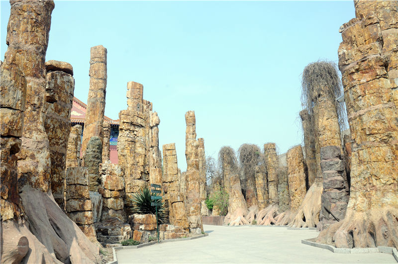 大世界基尼斯之最六:收藏數(shù)量最多的木化石石林。該石林林化石數(shù)量388座,最高一棵高11米,最粗一棵周長11.8米,來自于新疆、遼寧、內(nèi)蒙三個地方。