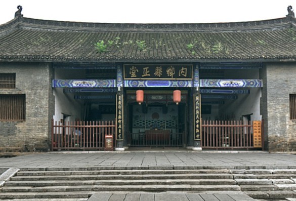 照壁對面的牌坊叫“宣化坊”,它的南面書“菊潭古治”,北面書“宣化”二字,是知縣每月的初一、十五宣講圣諭、教化百姓的地方。大門面闊三間,明間為過道,東梢間的前半間置“喊冤鼓”一架,供百姓擊鼓鳴冤之用;西梢間的前半間立有兩通石碑,上面刻有“誣告加三等,越訴笞五十”,更增加了縣衙的嚴肅性。大門是門子打更報時、監管進出人員的第一道防衛之門。我們進大門后,現在看到東邊的建筑叫寅賓館、衙神廟、三班院,西邊建筑是膳館和國內僅存的清代監獄。從大門到大堂百米甬道的中央有道門,叫儀門,是官府的第二道門。中間的大門過去時常不開,只在新官到任的第一天或迎接州、府官員時才可打開;儀門東西兩邊還各有一個小門,東邊的門叫生門,過去時常開著,供人們的日常出入,西邊的門叫“死門”,又叫鬼門,當犯人被判處死刑之后,從西門拉出去行刑,所以舊時處決犯人叫走西門或上西天。
