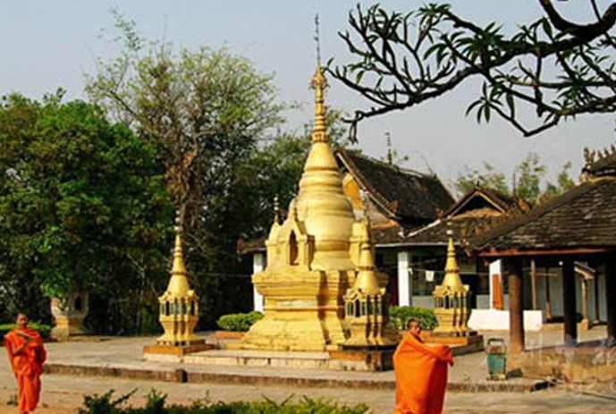 西雙版納景真八角亭位于景洪以西14公里,地處勐海縣景真山上,亭子因山而得名,是西雙版納的重要文物之一,建于公元1701年。西雙版納景真八角亭為磚木結(jié)構(gòu),呈八角形,亭身有31個(gè)斜面,鑲嵌彩色玻璃,并用金銀粉印出各種花卉、動(dòng)物、人物圖案,在陽光的照射下,光彩奪目。