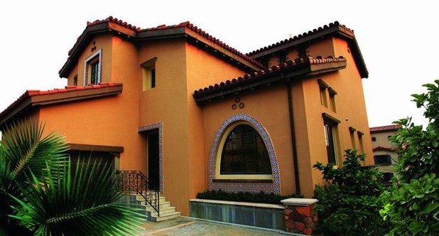 再觀那別墅,映入眼簾的是一片綠色的世界,綠門、綠窗、綠欄、綠柱、綠廊,而屬于建筑第五立面的屋頂,也漆成了墨綠色,而連那原先的灰褐色石墻,也因“爬墻虎”、美國凌霄爬滿而終成綠色,予人靜謐安寧而又清新的感受。