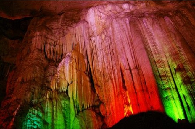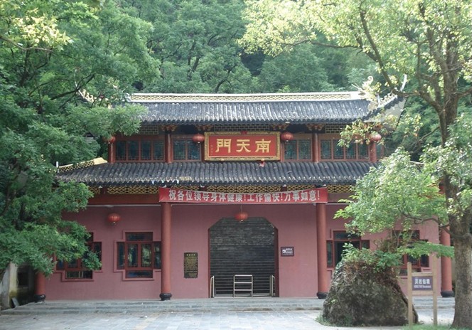 在怪石簇擁的錦繡谷中,有一塊巨石,懸空伸出,宛如懸在凌空中的一座橋,人稱“天橋”。相傳朱元璋與陳友諒大戰鄱陽湖時,敗逃至此,在前臨深壑,后有追兵的緊急關頭,忽然從天降下一條金龍,橫臥在深壑之上,化為一石橋,待朱元璋縱馬過橋后,頓時烏云滾滾,雷聲隆隆,天昏地暗,只見一道灼眼的藍光將石橋擊斷。橋斷后,云散日出,一切又恢復了原來的面貌,仍然是雙崖對峙的絕澗。這當然是神話傳說,其實這里原來是一處巨大的斷層,峰高壑深,峭壁連片,山崖上有一塊褐色巨石伸向深澗,遠遠望去似一斷橋。大自然界的鬼斧神工與美麗動人的傳說,相映生輝,將游人帶入了神奇的境界。
