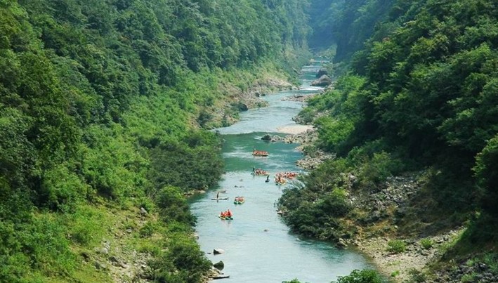 猛洞河水量豐富,河流坡降大,水急灘多浪奇,高大的峭壁直插水面,兩岸并相靠攏,形成幽深的峽谷景觀。沿河兩岸古木蒼天,蒼翠欲滴,奇石錯(cuò)落,流泉飛瀑隨處可見(jiàn),下游一路水碧山青,風(fēng)光秀麗,野猴成群,溶洞奇特。猛洞河天下第一漂項(xiàng)目位于猛洞河支流,全長(zhǎng)47公里,最精彩處位于哈妮宮至牛路河段,長(zhǎng)約17公里。