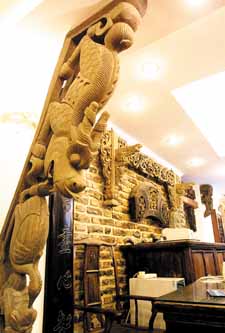 粵唯鮮位于天津小洋樓集中區域—五大道附近,這里不僅僅是家餐廳,它的另一個招牌是華蘊博物館,馮驥才為它題詞:“能吃的博物館”,也算是中國唯一了。華蘊博物館所陳列的展品囊括了西周至清朝各個歷史時期最典型的青銅器、銅器、木雕、石器、老門窗、彩繪木人、煙具、屏風、座鐘、桌椅、木箱、提盒、老鐵、鐘等100多種的3000余件文物最早的可追溯到公元二三千年前。華蘊博物館的特色之處還有世界上第一的石頭酒吧。粵唯鮮的石頭酒吧開創了石文化第一,這里擺放的石頭多是漢白玉的,囊括了北齊、北魏、宋元明清等朝代的300余塊石頭。而且石頭酒吧所收藏的漢白玉石器無論是其數量還是質量在全國乃至全世界都是一流的。酒吧的格調是中西合璧,古樸、不失現代風格。