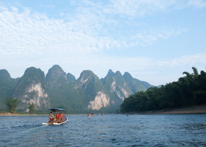漓江發源于興安縣貓兒山,從桂林到陽朔83公里水程,漓江像蜿蜒的玉帶,纏繞在蒼翠的奇峰中,造化為世界上規模最大、景色最為優美的巖溶景區。乘舟泛游漓江,可觀奇峰倒影、碧水青山、牧童悠歌、漁翁閑吊、古樸的田園人家、清新的呼吸——一切都那么詩情畫意。