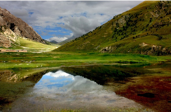 柏樹山位于自治州首府德令哈以北的柏樹山,古柏蓊郁,滿山蒼翠,柏間紅柳叢叢,山花簇簇;瀑布飛珠濺玉,訇然有聲;山頂白云繚繞,宛如輕紗;山下,清澈的河池里倒映著山峰挺拔的身影。微風襲來,碧波蕩漾,藍天、群山、池水相映成趣,構成一幅絕妙的高原山水畫。