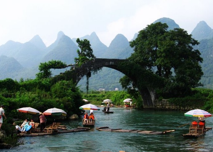 4、也可以在陽朔汽車站坐開往金寶的中巴車,中途在金龍橋下車,從金龍橋可開始漂流。