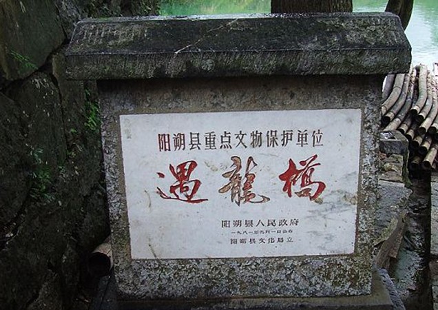 遇龍橋建于明永樂十年(1412年),為虹式單拱石橋,條石錯縫起拱,干砌。橋長36米,寬4.2米,高9米,造型氣勢雄偉,版權所有山東聊城聊之旅國際旅行社有限公司,轉載必究!古樸美觀,極具民族特色,是廣西歷史上的名橋。橋面立有抗戰勝利紀念碑l件,記載1944年村民自發與日寇激戰數十天取得勝利的史實。