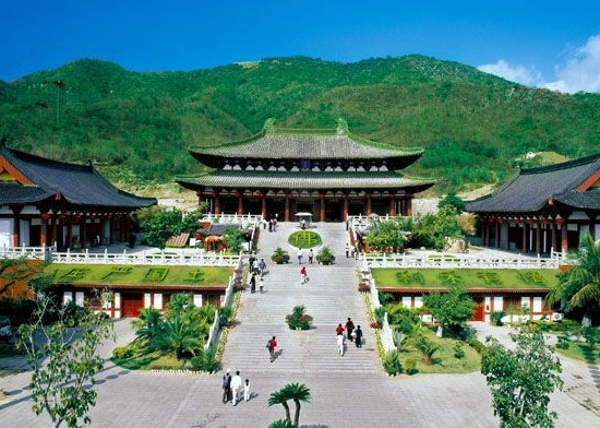海南省三亞市南山寺,位于海南省三亞市以西40公里南山文化旅游區內的“佛教文化公園”中。據史志所載,三亞南山即菩薩長居之“補怛洛迦”,有“大光明山”之稱,三亞南山寺占地400畝,仿唐風格,建有仁王殿、大雄寶殿、東西配殿、鐘鼓樓、轉輪藏、法堂、觀音院、悲田院等,依山就勢,錯落有致,莊嚴肅穆,清凈幽雅。入其境若入真觀音菩薩說法之道場。