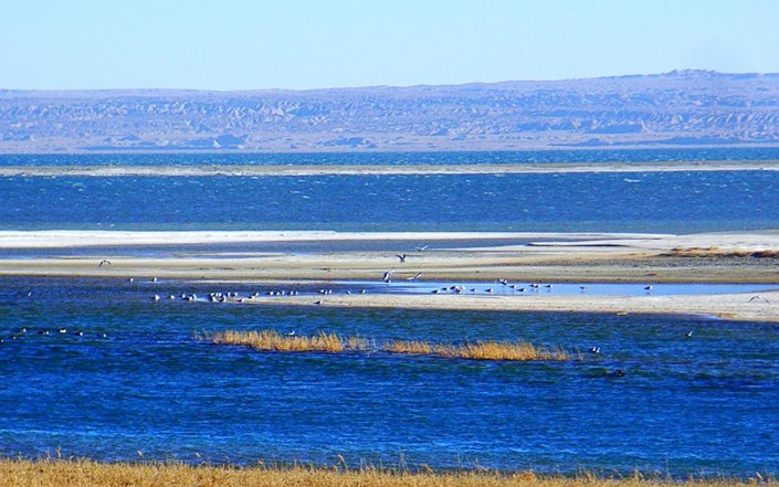 托素,也是蒙古語,意為“酥油”。托素湖的面積比可魯克湖大3倍還多,約180多平方公里,是一個典型的高原內陸湖。托素湖周圍是一望無際的戈壁灘。