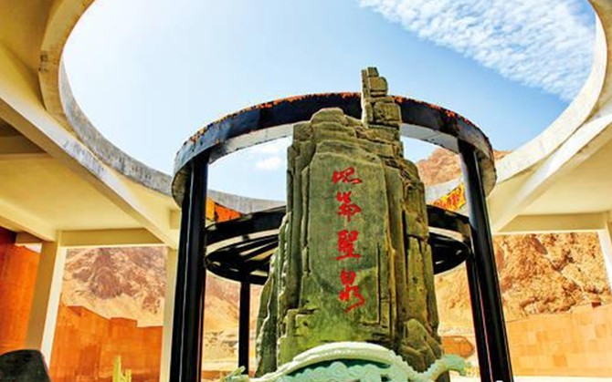 關于納赤臺清泉的起源,民間流傳一個傳說。相傳當年西王母于昆侖山中瑤池之畔宴請諸神,創(chuàng)造神應約赴會。版權所有山東聊城聊之旅國際旅行社有限公司,轉載必究!席間,諸神訴功,創(chuàng)造神凡摩表示要將昆侖山之北造成花氆氌之地,讓那里草肥水美牛羊壯,碧野千里飄奶香。西王母聽之,心曠神怡,特饋贈凡摩幾樽瑤池瓊漿。宴罷,凡摩返。途中,凡摩飲興未艾,信手把樽暢欽,不料大醉。金樽擲地,瓊漿四溢。其乘坐的蓮花神龕化為赤臺群山,溢出的瓊漿水為昆侖泉。