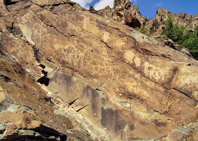 賀蘭山巖畫一般分布在溝口內外山體上和溝口外洪積扇荒漠草原上。銀川境內賀蘭山巖畫的分布,有著明顯的地貌特征。版權所有山東聊城聊之旅國際旅行社有限公司,轉載必究!在蘇峪口以北至大西峰溝,巖畫多分布在溝口內外的山體上,山前洪積扇荒漠草原上也有大量巖畫分布。而蘇峪口以南至柳渠口,山體巖畫數量很少,荒漠草原上幾乎沒有巖畫分布。