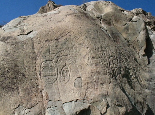 在賀蘭山上萬幅的巖畫中,人面像極具特色。原賀蘭山巖畫管理處主任賀吉德說,放眼整個地球的巖畫圖系,在巖畫圖像中最普遍的人面像,大多集中于環太平洋地區,這個地區有11個國家和地區分布著人面像巖畫,但在遠離環太平洋的賀蘭山卻以近千幅的數量成為世界上人面像最集中、圖形最豐富的地區。