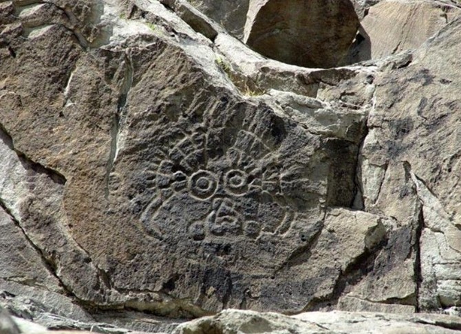 這為學者們出了一道至今沒有破解的難題,賀蘭山巖畫人面像究竟透露出了怎樣的文化信息?它是中國本土的產物還是與歐洲、非洲及其他地區的人面像屬于同一種文化結果呢?中央民族大學教授龔田夫說:“賀蘭山人面像是同一種文化長距離傳播的結果。它們一般都刻在圣山上,特點是比較統一。刻的人一般是不住在山里而是住在山外的平原上的。人面像多是摹刻的,看似人面,其實是符號的組合,有著一些基本規律,赤峰發現的人面像就像個星象圖。處于內陸的內蒙古額濟納境內就有人面像,不過很粗糙,這說明內陸地區也有人面像。”